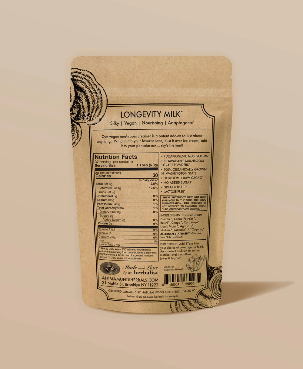 Our Mushroom Mocha Milk is a potent add-on to just about anything. Whip it into your favorite latte, dust it over ice cream, add into your pancake mix...the sky's the limit!