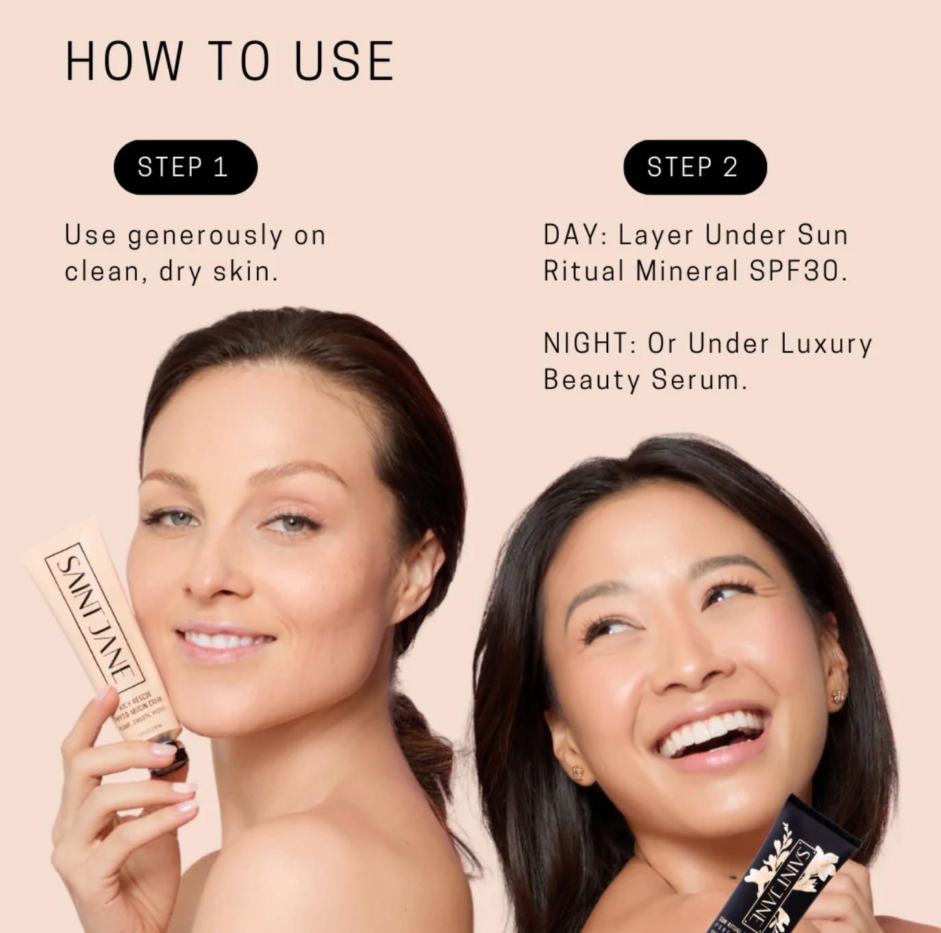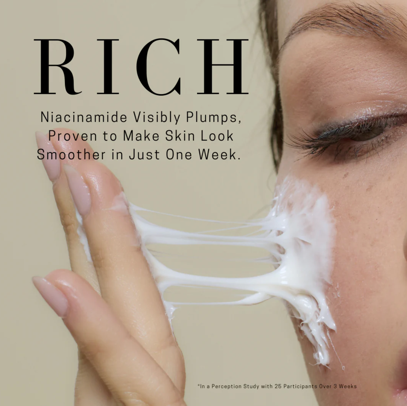 This cream has a gorgeous, stretchy texture leaving skin plump and bouncy to the touch!